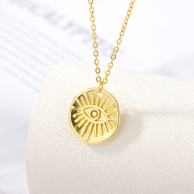 The Ziya Evil Eye Protection Necklace features a sleek pendant crafted from stainless steel, designed to bring both elegance and meaning to your everyday look.